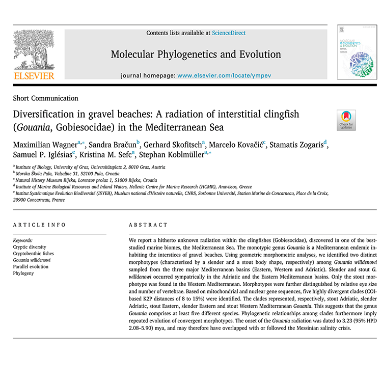 Mostly invisible to the human eye, miniaturised and characterized by a hidden lifestyle, “cryptobenthic” fishes are among the scientifically most understudied groups of vertebrates on this planet. Denoted as the “hidden half”, cryptobenthic fish diversity is thought to be considerably underestimated, with many new species having been described in the recent past. However, the discovery of entire new groups of vertebrates that have been overlooked for more than two centuries are rare, and in an era dominated by species extinction even more interesting for biologists and the public alike. What astonishes me most, nonetheless, is the fact that I stumbled upon this peculiar system in one of the best studied marine basins in the world, the Mediterranean Sea and above all in a very unexpected scene: Right underneath the toes of thousands of clueless people who are about to take an invigorating bathe, I found a group of small fishes that defy successfully the extremely harsh conditions of the intertidal zone, since millions of years.